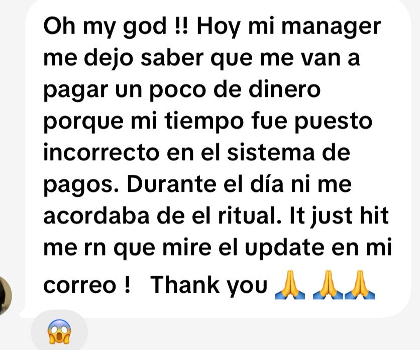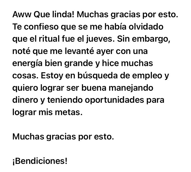 - ✅ Antes del ritual: asegúrate de incluir tu nombre completo, fecha de nacimiento y lo que deseas lograr en la sección de “déjame tus datos aquí” en el carrito antes de pagar. Esa información es la que utilizaré para trabajar tu energía en la petición grupal.